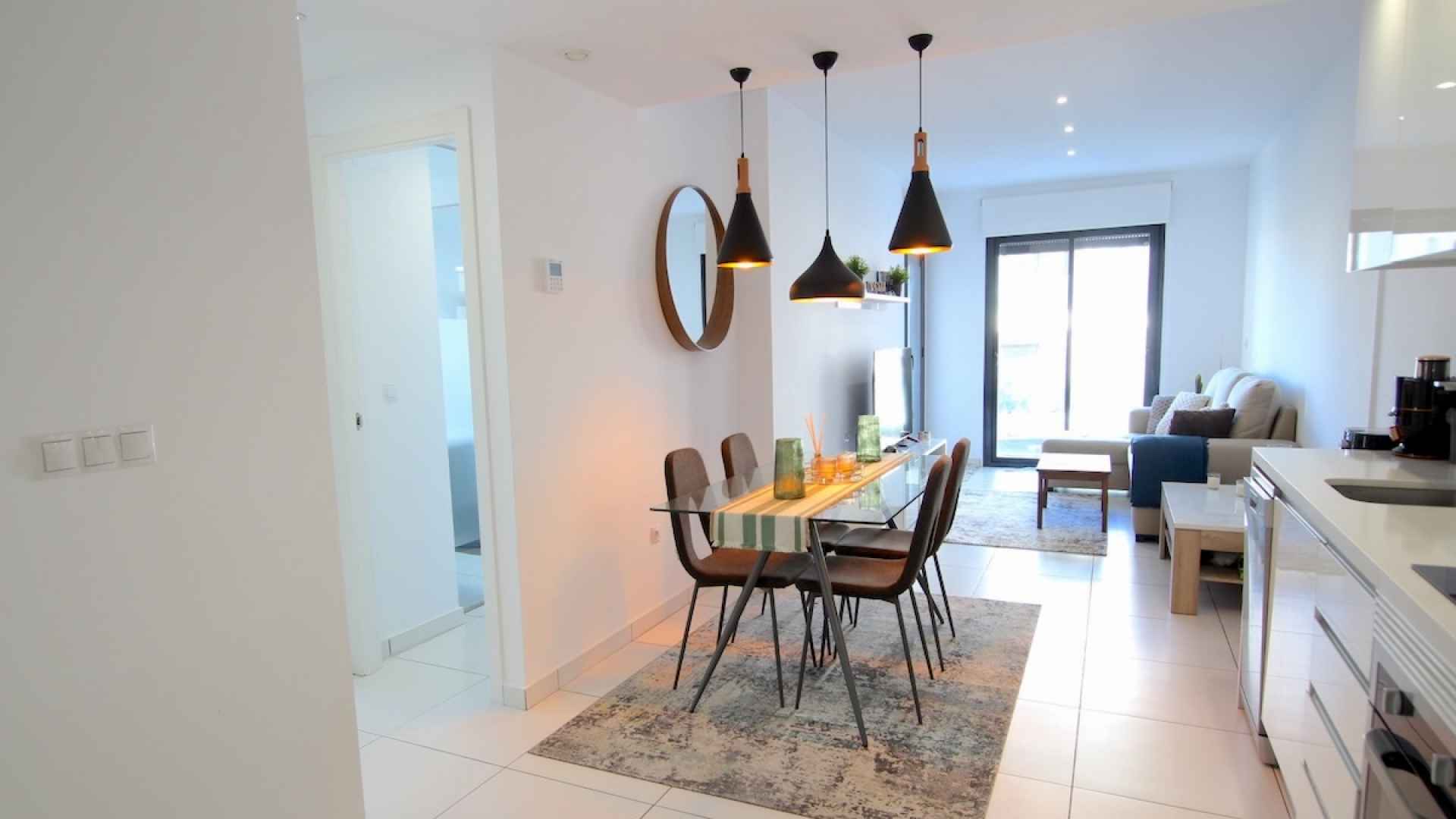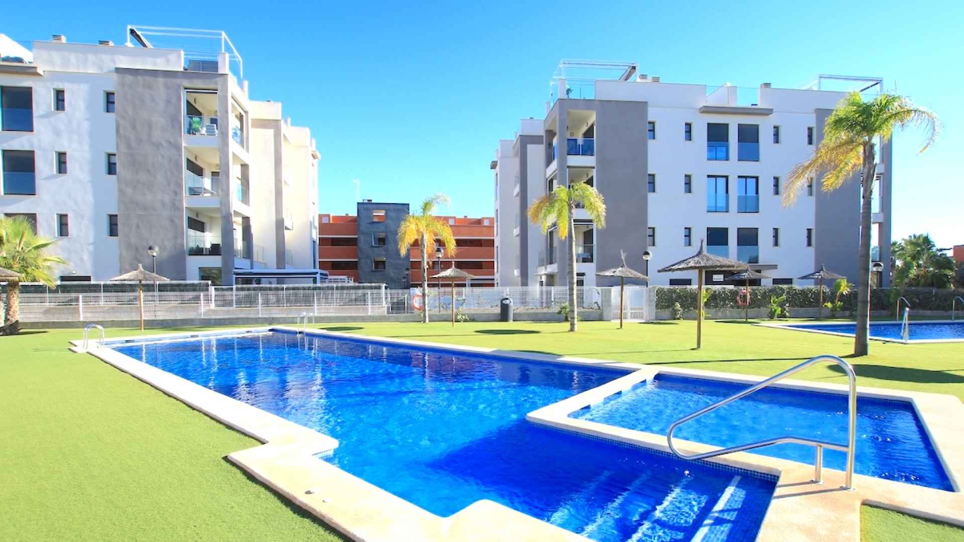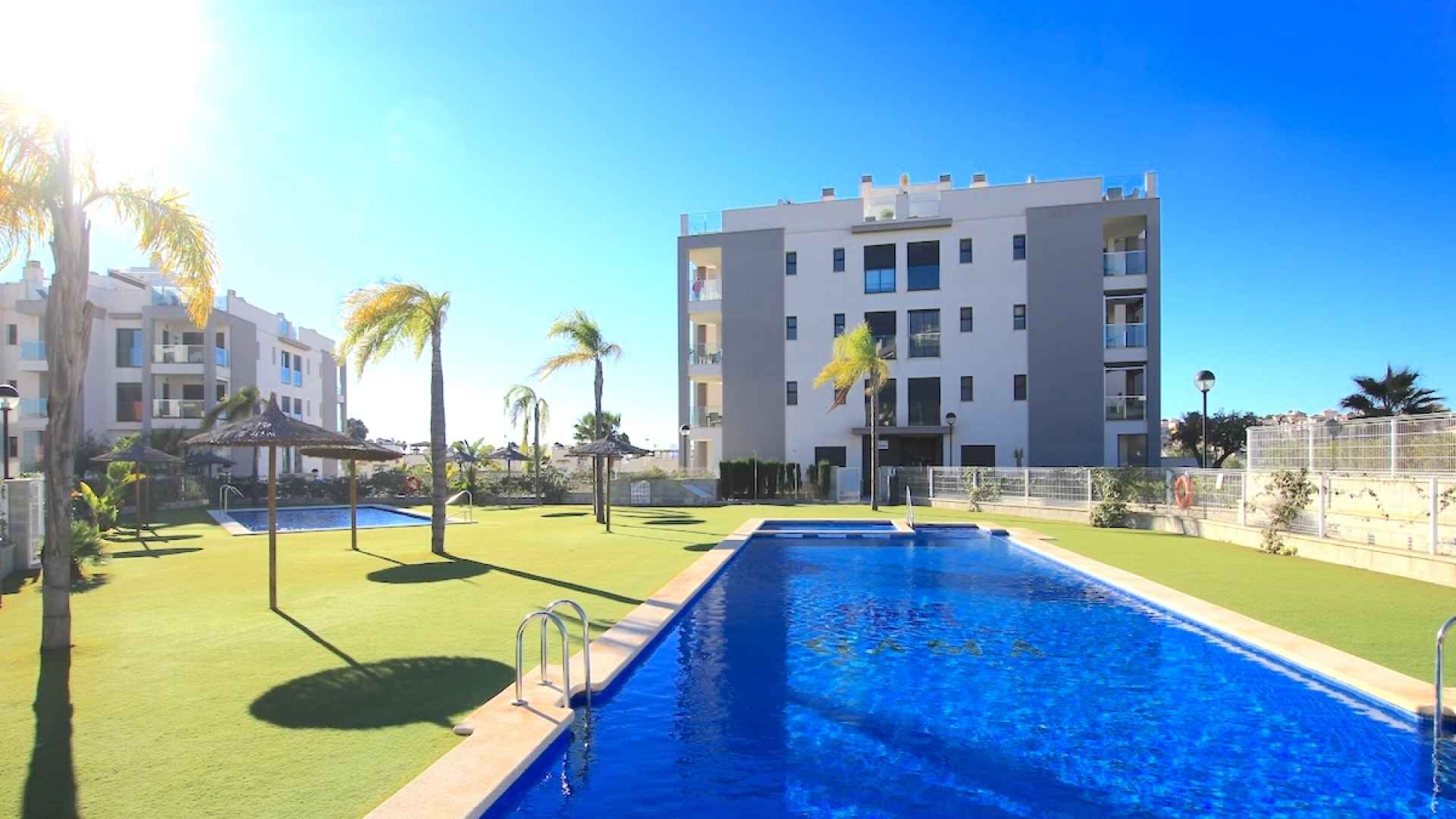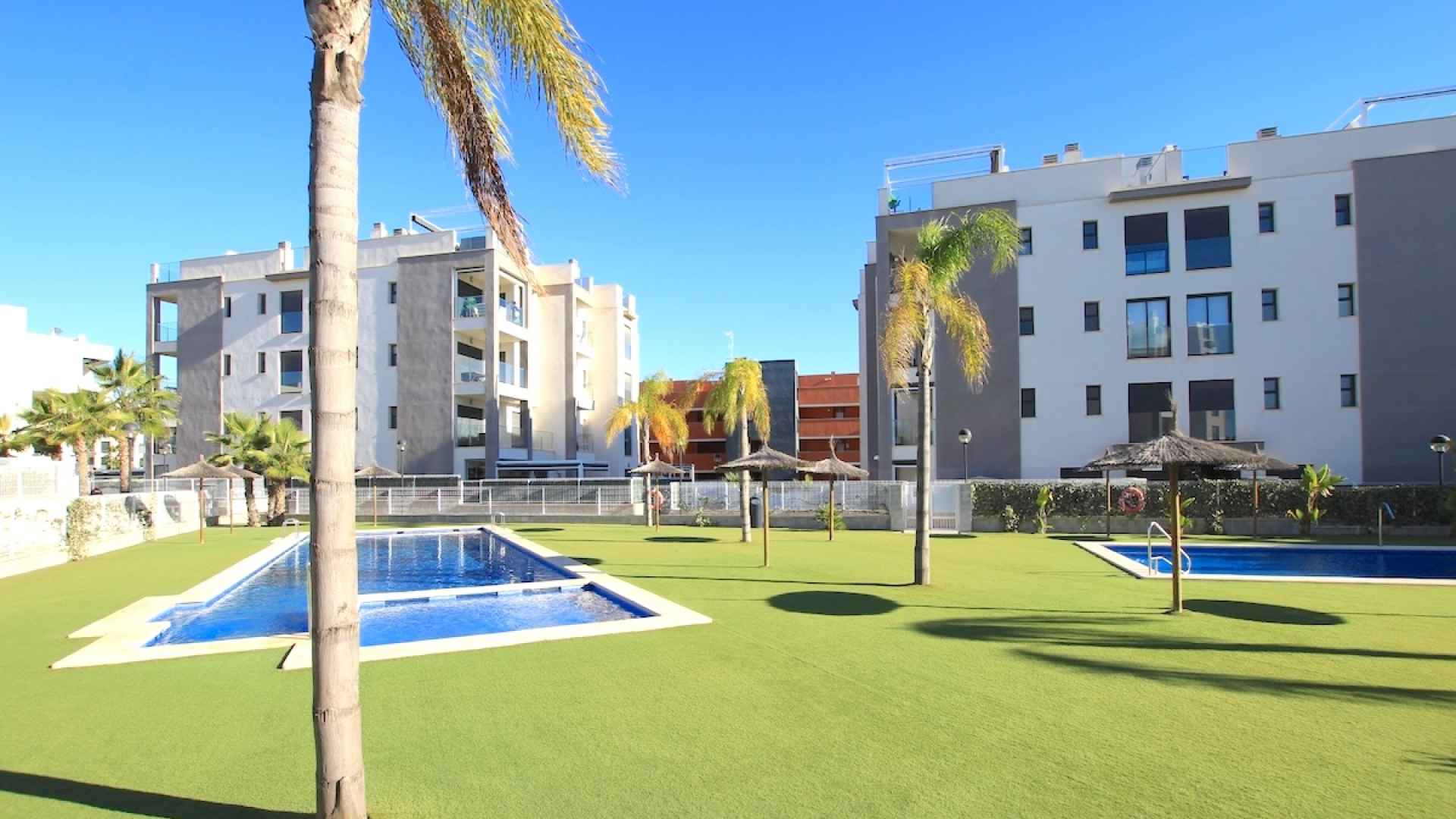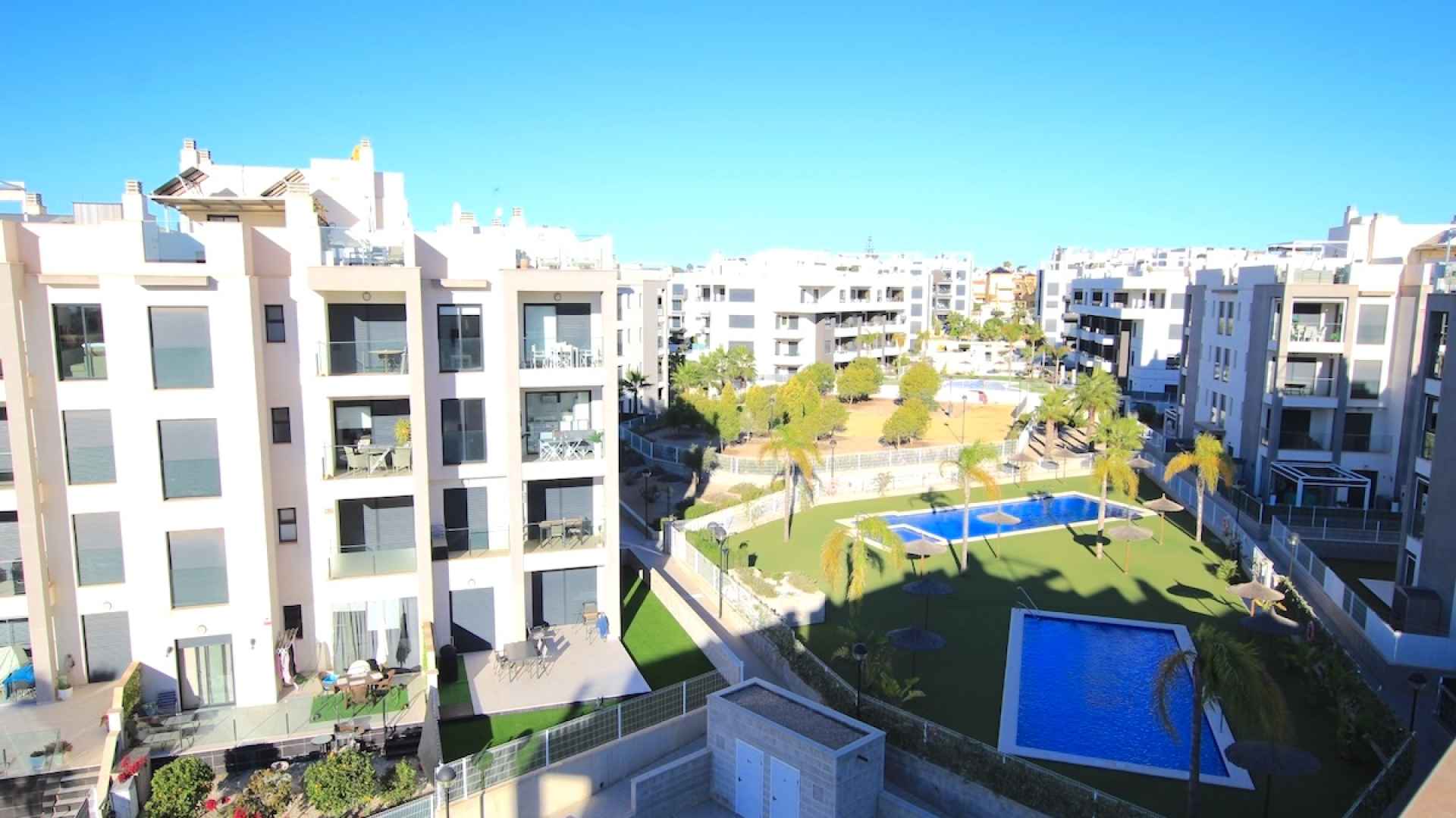 Discover modern Mediterranean living in this exceptional two-bedroom, two-bathroom second-floor apartment, perfectly positioned within the prestigious Valentino Golf I Development in Villamartin on the Costa Blanca South. Within this secure, gated community, residents can enjoy access to beautifully landscaped communal gardens, three sparkling swimming pools, a padel court, petanque courts, plus a dedicated children’s play area. Ideally situated less than a 15 minute walk to the famous Villamartin Plaza which boasts a huge array of lively bars and restaurants. Also within walking distance you have the lovely Villamartin clubhouse with its beautiful Spanish tiled sun terrace. Just a very short drive away you have the wonderful Zenia Boulevard shopping mall and the beautiful sandy beaches all along the Orihuela Costa resorts including; La Zenia, Cabo Roig, Punta Prima & Playa Flamenca. For the keen golfer as well as Villamartin you also have the courses of Campoamor, Las Ramblas & Las Colinas nearby and for family fun the wonderful Greenlands adventure golf is also close by.