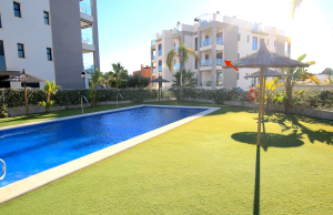 Villamartin is a very popular area on the Orihuela Costa with its own beautiful golf course and with the Las Ramblas and Campoamor courses just a short drive away. The lovely sandy beaches of the Orihuela Costa are also nearby, as are the holiday resorts such as Playa Flamenca, Punta Prima, Cabo Roig, La Zenia and Campoamor. Villamartin itself has many amenities such as shops, restaurants, bars, banks & supermarkets as well as the famous Villamartin Plaza with its many restaurants and bars set amongst tropical plants and Spanish tiling. Villamartin also has its own international school called El Limonar. Both Alicante and Corvera airports can be reached in a 45/50 minute drive.